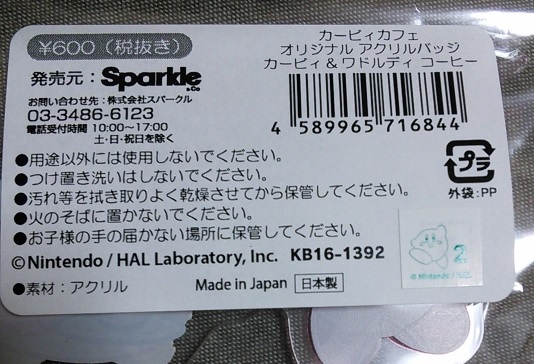 ショップとかカフェとか カービィちゃんショップとかカフェとかに行った記録。行くたびに増える。満たされる。 1回目2回目3回目4回目【1回目】はあ……ああ……まあちょっと聞けよ。先日行って参ったわけですよ。 ガチャガチャガチャガチャしてきたわけですよ。 あとまあ買ったよね。端からさらっていく勢いでね。ショップの中は写真撮ってる場合じゃなかったのでカフェ裏の展示コーナー。 ショップ外から。 かわいい。 かわいい。 かわいい! テイクアウトコーナーのレジのトレイにカービィちゃんが乗ってて、思わずお布施のようにじゃらじゃらってやってしまう人が出るんじゃないかとちょっと心配になりました。 あとここのゴルドーがとてもかわいい。 満たされた。けど日を改めてまた行きます。カフェ入れなかったので。もうほんと常設店舗になってくんねえかな。季節ごとにいろんなグッズやメニューが増えて……デュフ……フヒ……というかカフェ仕様の4人のぬいぐるみ出してくんねえかな……もうほんと今回のビジュアルはなんべん見ても旦那が素敵だと思うので……彼もまたカッコよさとかわいさが高次元で融合した稀有な存在の一人なので……ちなみにショッパーに入り切らないほど買うと、商品は紙袋に入れてショッパーだけ別個でくれるから安心ですよ。ありがたや。ていうか「ショッパーに入れてよろしいですか?」とか言ってたからたぶん「いやどす」って言えば紙袋に入れてくれるんじゃなかろうか。ついでにいうとショップでは現金のみ取り扱いっぽかった気がします。興奮していてよく覚えてないけどたぶん現金のみ……だと思う。確証はない。カフェは知らん。カップケーキをおみやげに買いました。 もう少しで家に帰りつこうかというところで箱をガツンと揺らしてしまい、無敵キャンディが見るも無残な状態になったことが感じられるかと思います。諸行無常。味はどれもおいしかったです。フランボワーズクリームとかいうものを初めて口にしたけど甘酸っぱくてとてもうまいです。なんかベリー系の味なんだがフランボワーズってなんぞいな。と思ってぐぐったらなんのこっちゃないラズベリーのことだそうで、今のしんきょうを語るなら、バンジージャンプの最中に、ヒモを付けわすれた時の気分ににている。想像をはるかに超えるおいしさ。はるかに超えるというか、こういうキャラ物のイベントで出てくる食べ物の味にいっさい期待していなかったので申し訳ない気持ちに。おいしい……おいしいじゃないか……公式サイトのメニュー画像はめっちゃうまそう→いやしかしだまされないぞ→でもうまそう→いいやだまされねえぞ……というような醜い疑心暗鬼に陥っていた私の心を完全なまでに浄化する味でした。暗鬼どっか行った。んで天使のようなシェフが降臨した。そうだよね。カービィちゃんが食べ物にこだわらないわけがないよね。おいしかった。もしこれが近所で買えるなら週一ぐらいで買いそう。だから常設化を!!! ぜひ!!!ところで天使のようなシェフがきょとんとした顔でウェイターの顔に生クリームぶっかけてる絵がすさまじいかわいさですよね。天然にもほどがある。で、まあ家に帰ってこういうものたちをニタニタしながら眺めていたわけですが、 ふと裏面を見るとこのようなことが書かれており、 たいそう困惑したわけですよ。明らかにアクリルマドラー用の説明なんだよ……ちなみにこっちも。 本商品には安全ピンを使用しています(使用していません)ボールチェーンですよ。念のため。安全ピンがついてるのは上のアクリルバッジのほうです。ワドルディたちが急いで作ったから印刷ミスっちゃったんだよきっと。ついでにここも行ってきたよ。 ちゃも様が御鎮座されていて私大歓喜。 でもってカントー缶バッチを箱買い。バッジじゃなくてバッチなんですね。 FRLGのときの絵が大好きなので。 この中にマサキを入れようって考えた人はどなたか知りませんが素晴らしいチョイスだと思います。 うおおーす!光っているのは単に電灯が反射しているだけです。 壮観ですなあ。ていうかアレですか、これジョウト編ホウエン編シンオウ編……と続くんですかね。楽しみですね。私はそこまでピカ様ファンではないのですが、レックウザポンチョのピカチュウはマジでかわいいと思います。りゅうせいぐんごっこが特にかわいい。出なかったけど。 おねむりピカチュウもかわいいですね。おねむりライチュウとか出ませんかね。私はどちらかというとライチュウ派なんです。昔から。アニメ初期のマチスのライチュウが大好きです。ピカチュウの電光石火で目を回しちゃう子です。どうだ、想像してみろ。かわいいだろう。ツリーも3つ買いました。 ヒトカゲだけはしっぽ以外変化がない。まあ耳とかないしね。スカイツリーの真似してるピカチュウが……とても……かわいい…… ところで、帰りの電車内で隣に座ってた小学生ぐらいの子が3DSで妖怪ウ